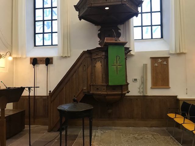 In het najaar van 2024 is de lambrisering onder de preekstoel aangebracht.